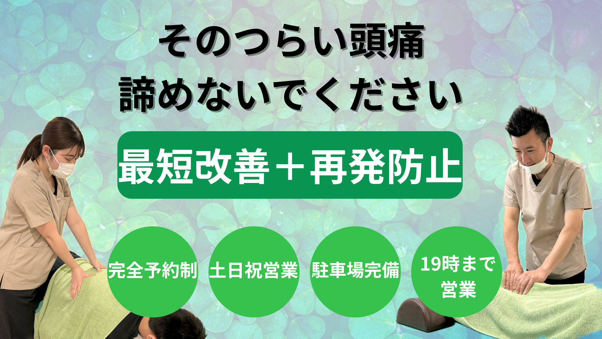 一人ひとりの頭痛の原因に合わせたオーダーメイドの施術で、